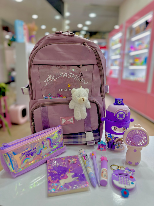 ست کوله پشتی و لوازم تحریر دخترانه رنگ بنفش